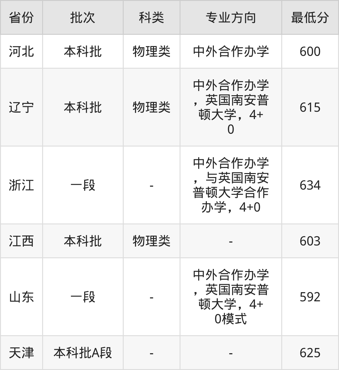 634分(中外合作办学,与英国南安普顿大学合作办学,4+0、位次22297名);