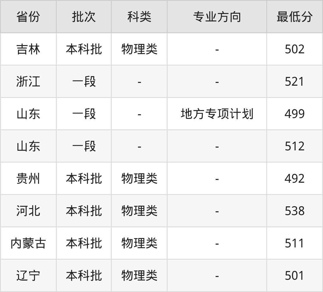 | 批次 | 专业方向 | 最低分 | 位次 |
