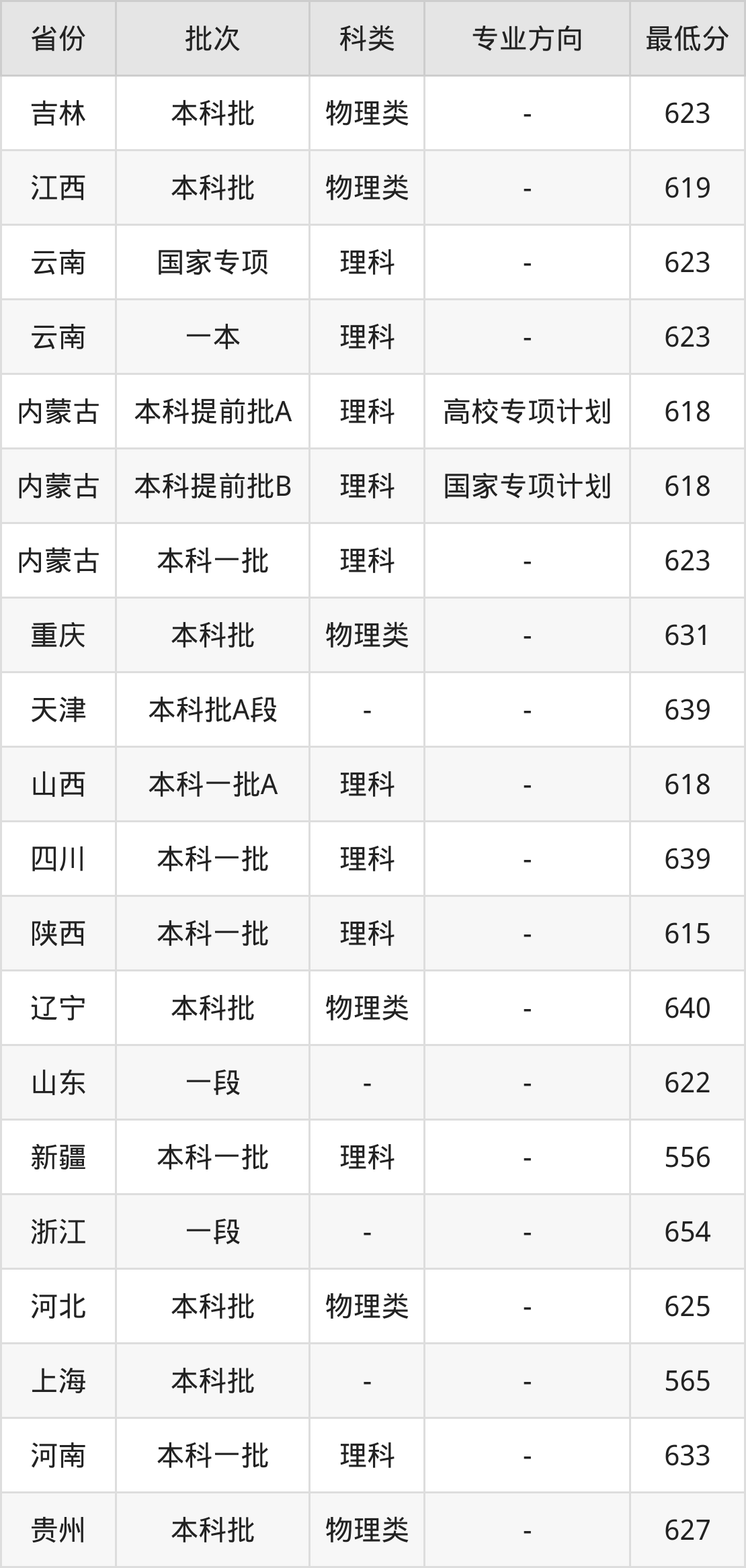 理科618分(高校专项计划、位次2594名),理科618分(国家专项计划、位次2594名),理科623分(位次2220名);
