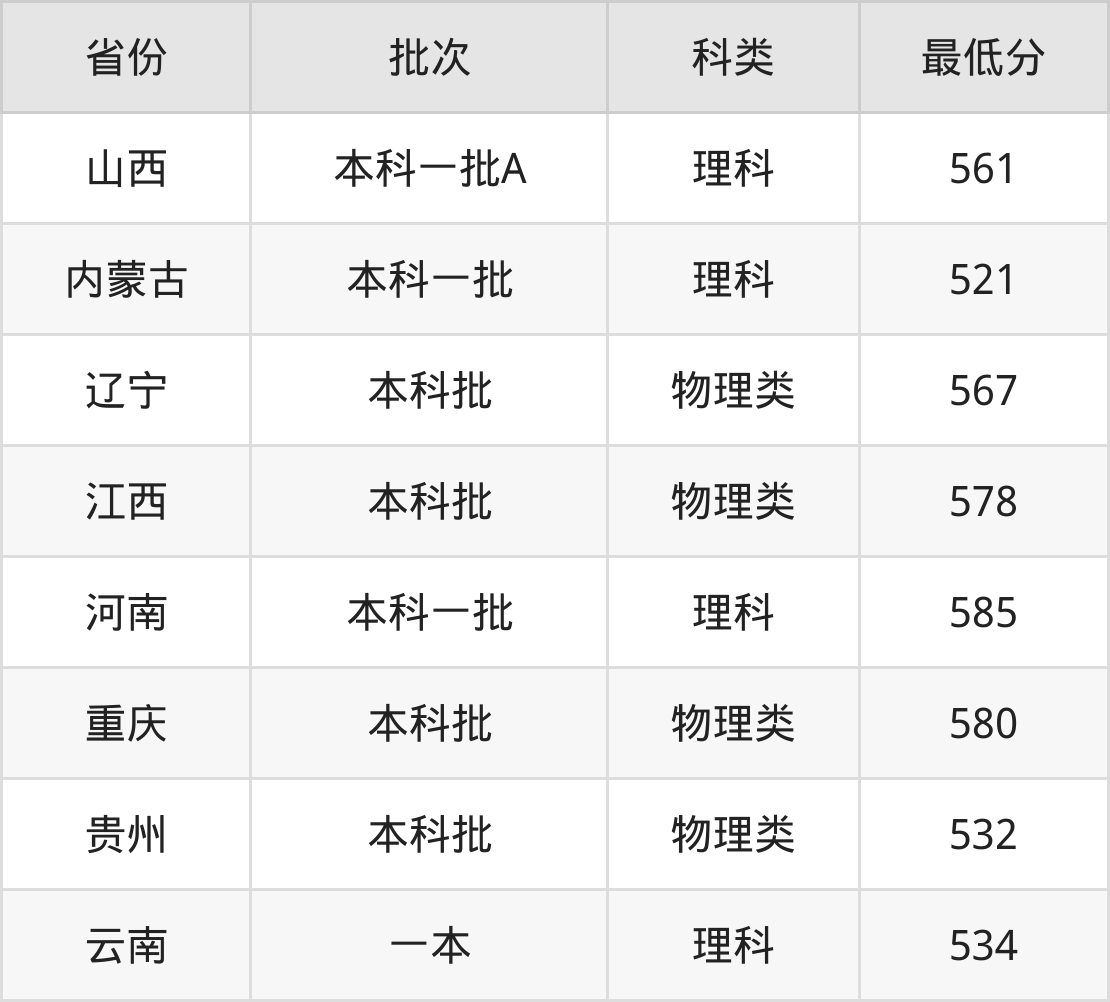 2024年贵州大学地质类专业在省外招生分数线各不相同,具体如下: