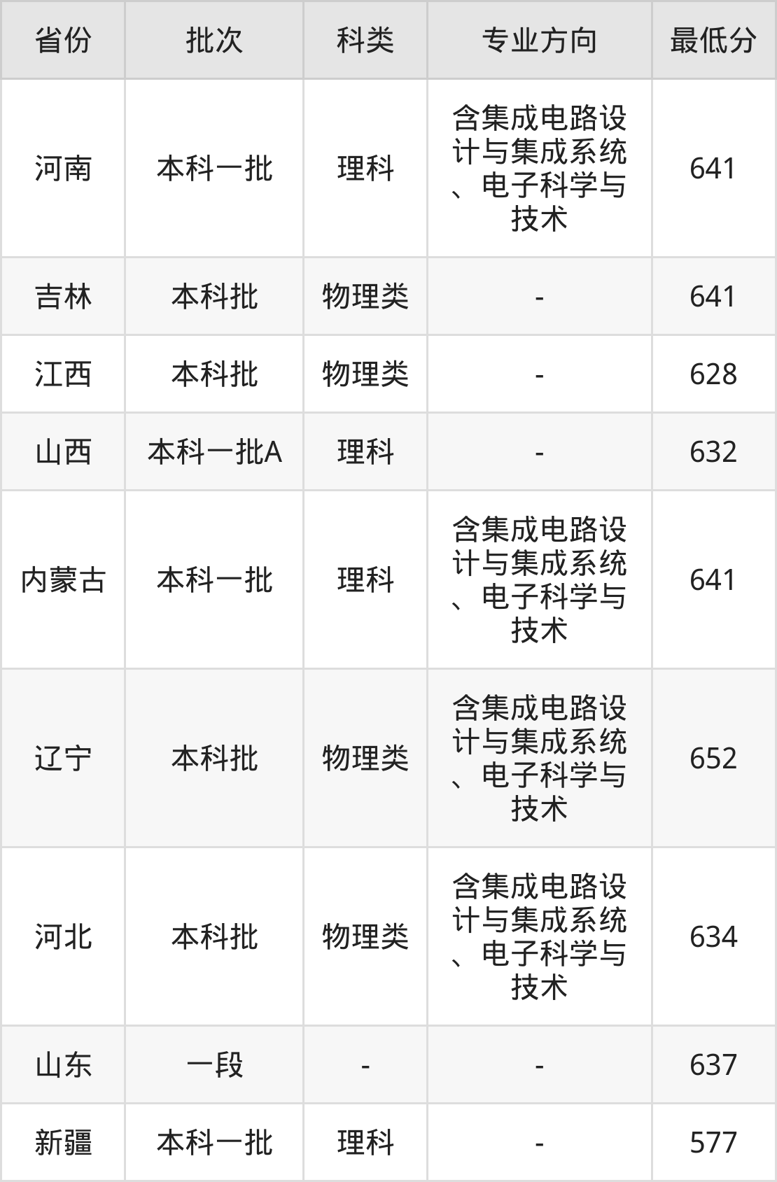 | 本科批 | 物理类 | 含集成电路设 计与集成系统 、电子科学与 技术 | 652 | 3285 |
