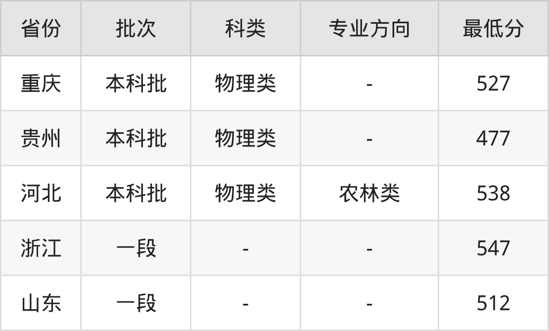 江西农业大学农业水利工程专业录取分数线2025各省汇总显示,省外招生最低分为山东512分、重庆527分、贵州477分、河北538分等。更多专业分数详情、选科要求、专业简介等均可在正文查阅。