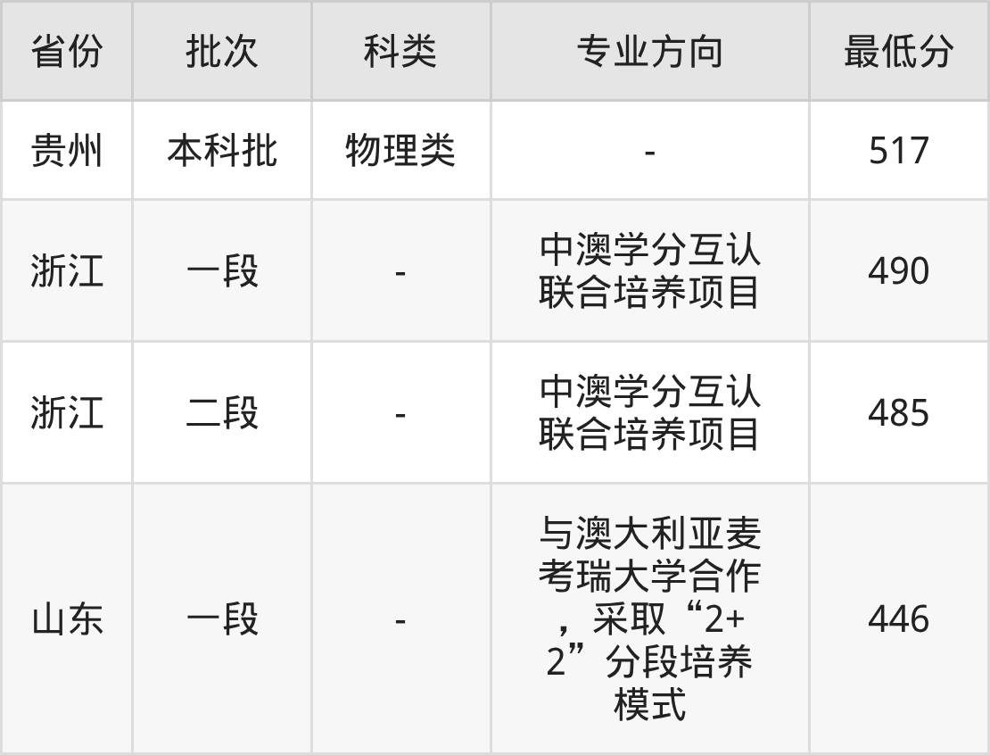 490分(中澳学分互认联合培养项目、位次184372名),485分(中澳学分互认联合培养项目、位次189414名);