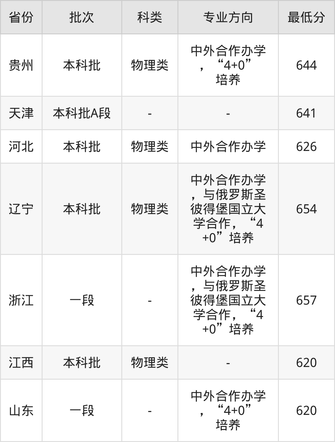 物理类654分(中外合作办学,与俄罗斯圣彼得堡国立大学合作,“4+0”培养、位次3001名);