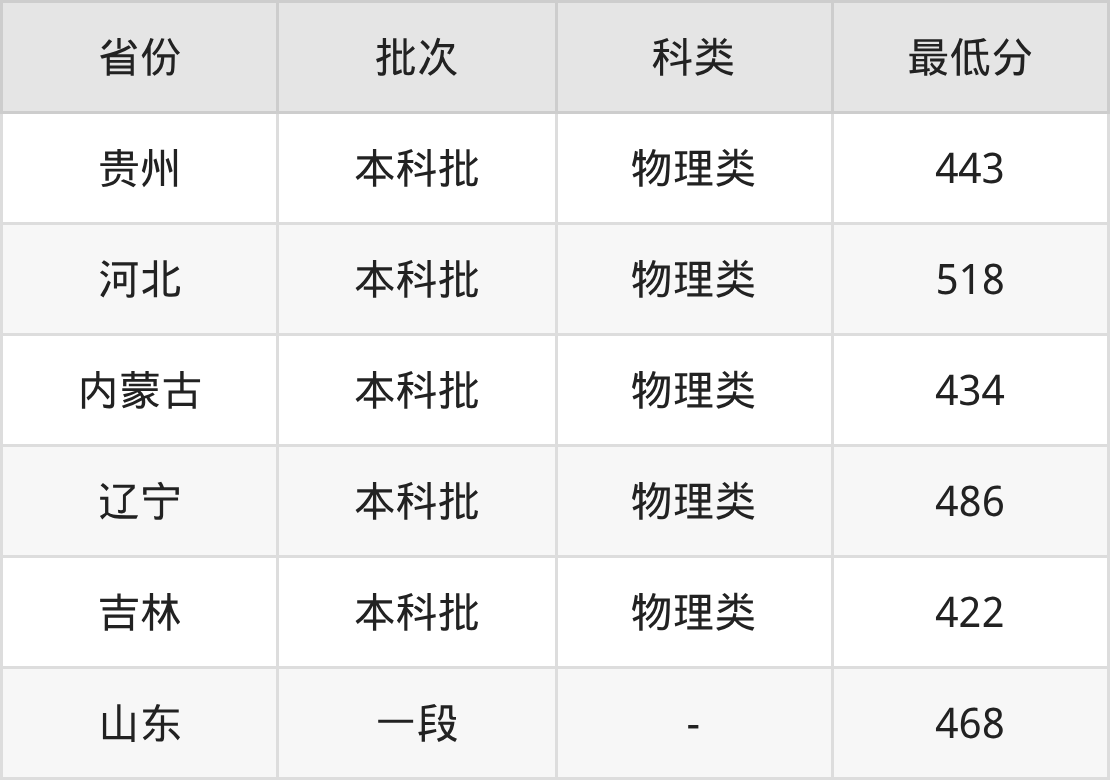 黑龙江工业学院安全工程专业录取分数线2025各省汇总显示,省外招生最低分为河北518分、内蒙古434分、辽宁486分、吉林422分等。更多专业分数详情、选科要求、专业简介等均可在正文查阅。