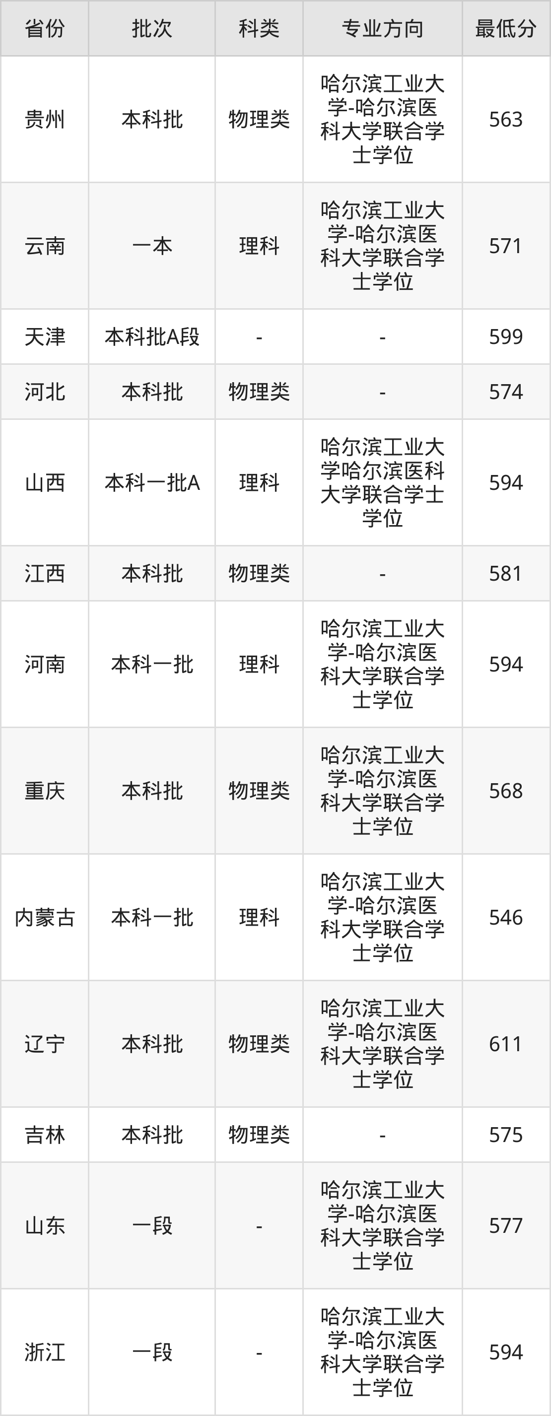理科594分(哈尔滨工业大学-哈尔滨医科大学联合学士学位、位次27919名);