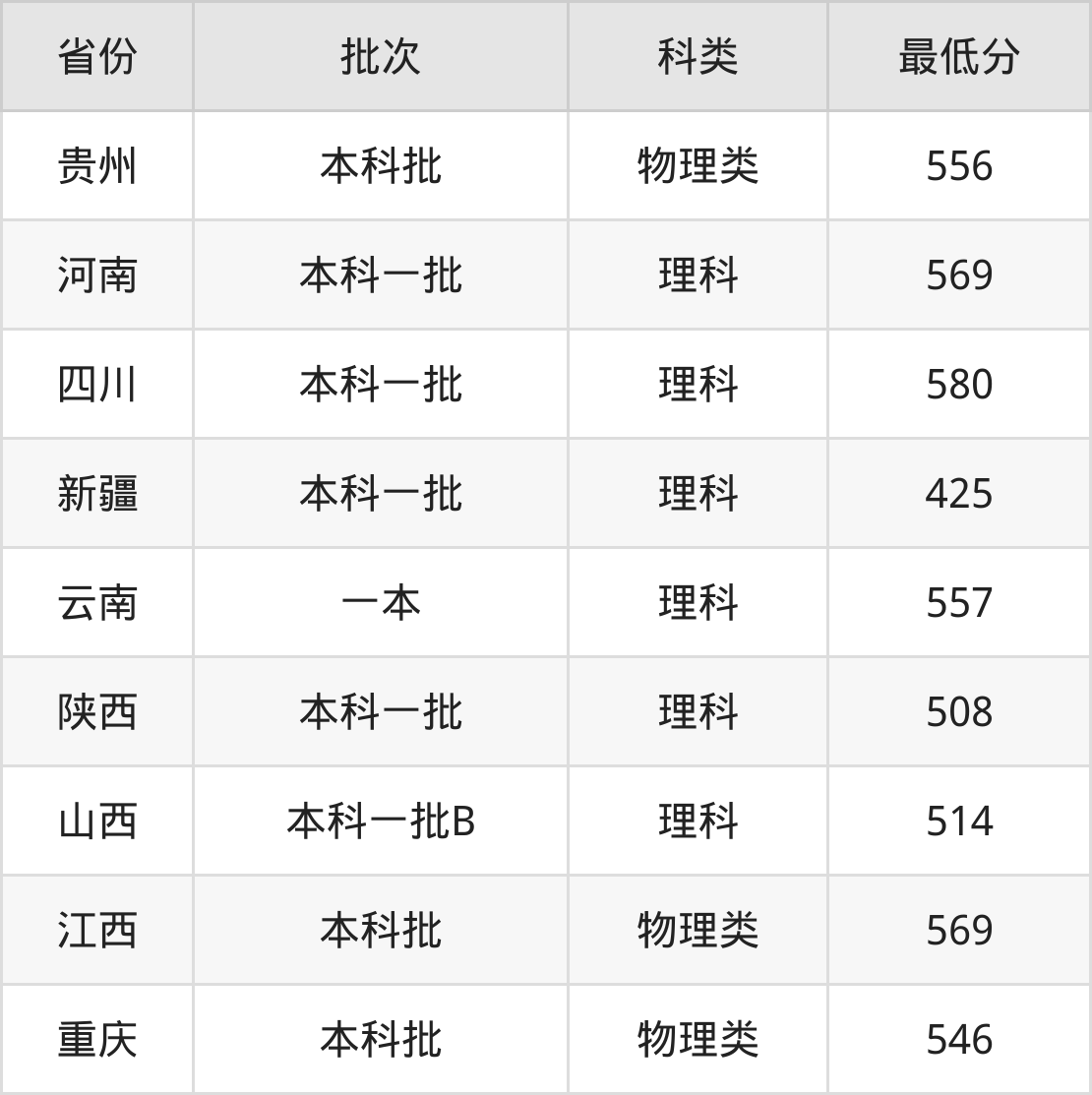 | 物理+化学 | 贵州、甘肃、江西、广 东、重庆 |
