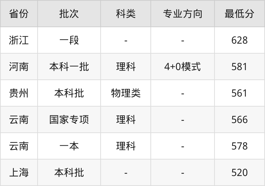 | 批次 | 最低分 | 位次 |