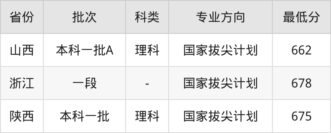 | 本科一批 | 理科 | 国家拔尖计划 | 675 | 527 |