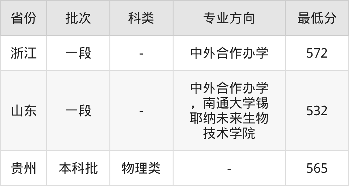 532分(中外合作办学,南通大学锡耶纳未来生物技术学院、位次115193名);