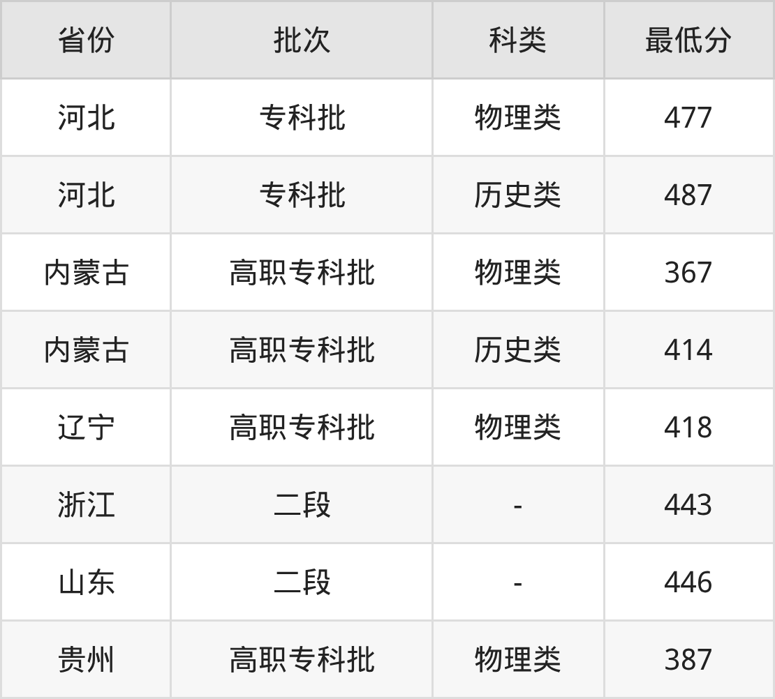 天津现代职业技术学院人工智能技术应用专业录取分数线2025各省汇总显示,市外招生最低分为山东446分、贵州387分、河北477分、内蒙古367分等。更多专业分数详情、选科要求、专业简介等均可在正文查阅。