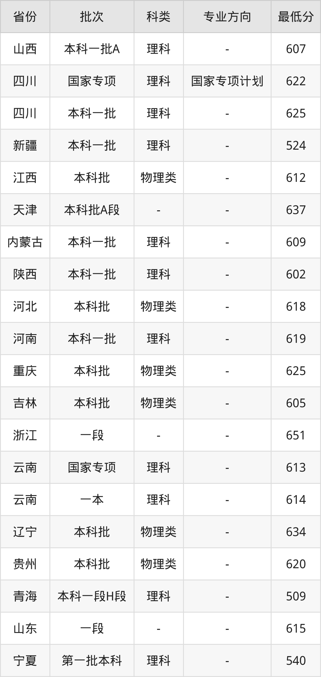 理科622分(国家专项计划、位次14164名),理科625分(位次12825名);