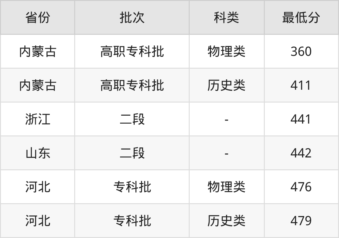 天津现代职业技术学院应用电子技术专业录取分数线2025各省汇总显示,市外招生最低分为河北476分、内蒙古360分、浙江441分、山东442分。更多专业分数详情、选科要求、专业简介等均可在正文查阅。