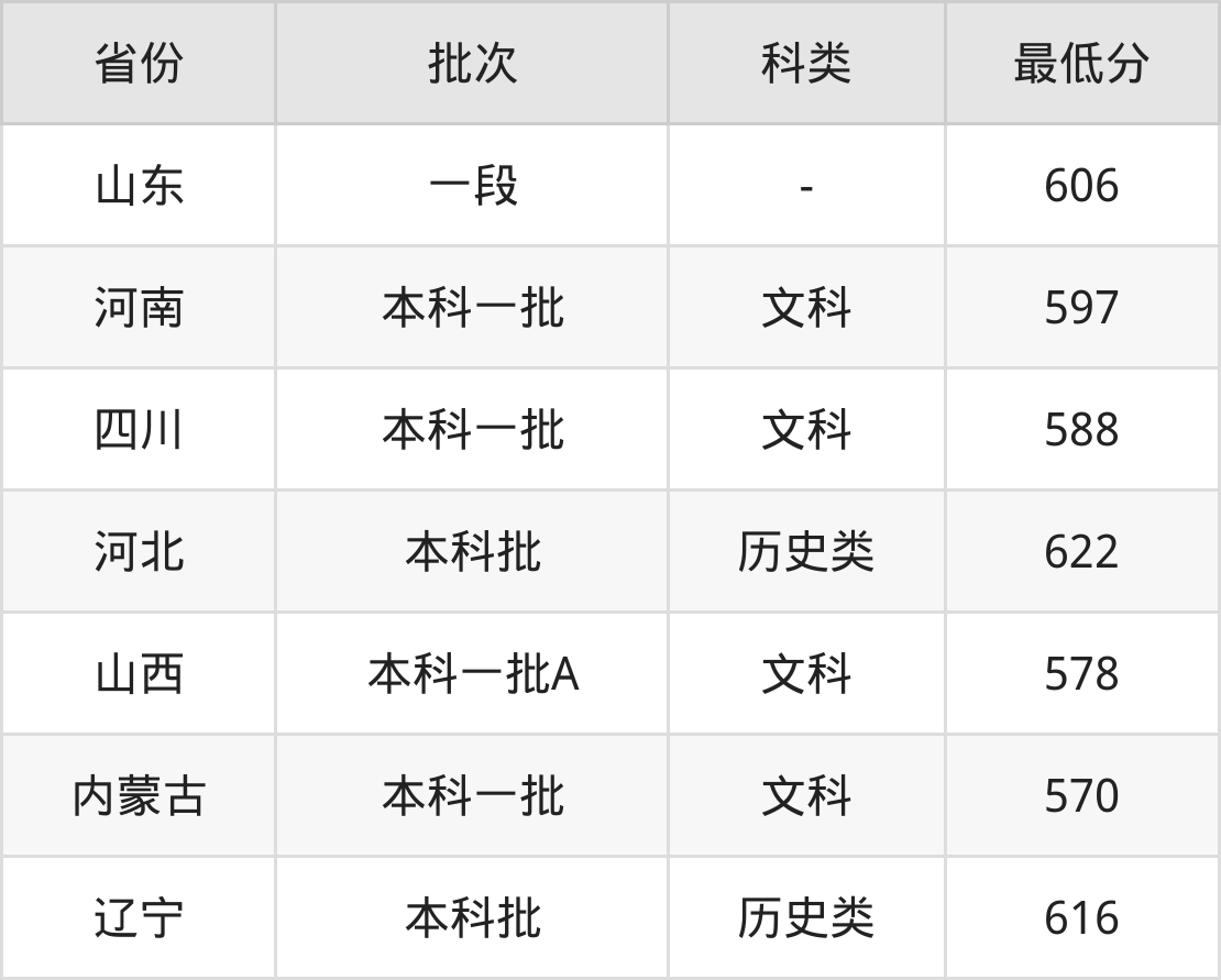 2024年东北大学人文科学试验班专业在省外招生分数线各不相同,具体如下: