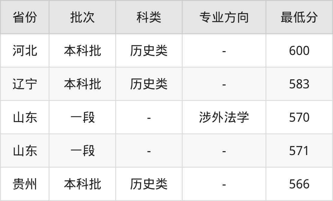 2025年曲阜师范大学法学专业在省外招生分数线各不相同,具体如下: