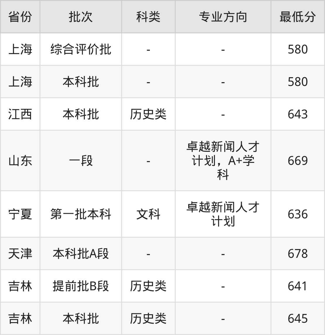 669分(卓越新闻人才计划,A+学科、位次1022名);