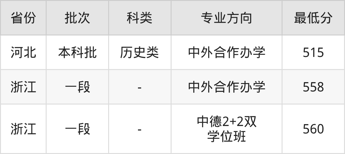 | 一段 | 中德2+2双 学位班 | 560 | 100162 |