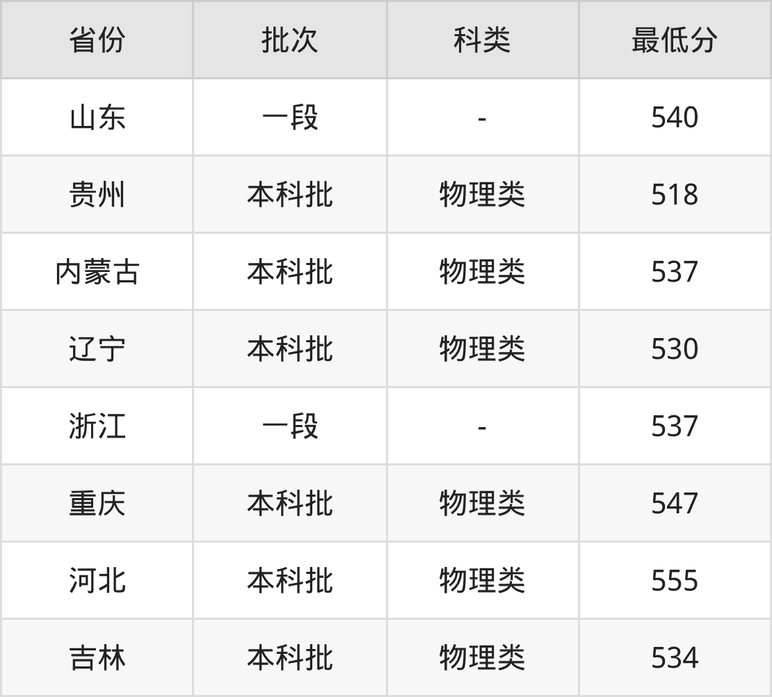 | 本科批 | 物理类 | 555 | 74291 |