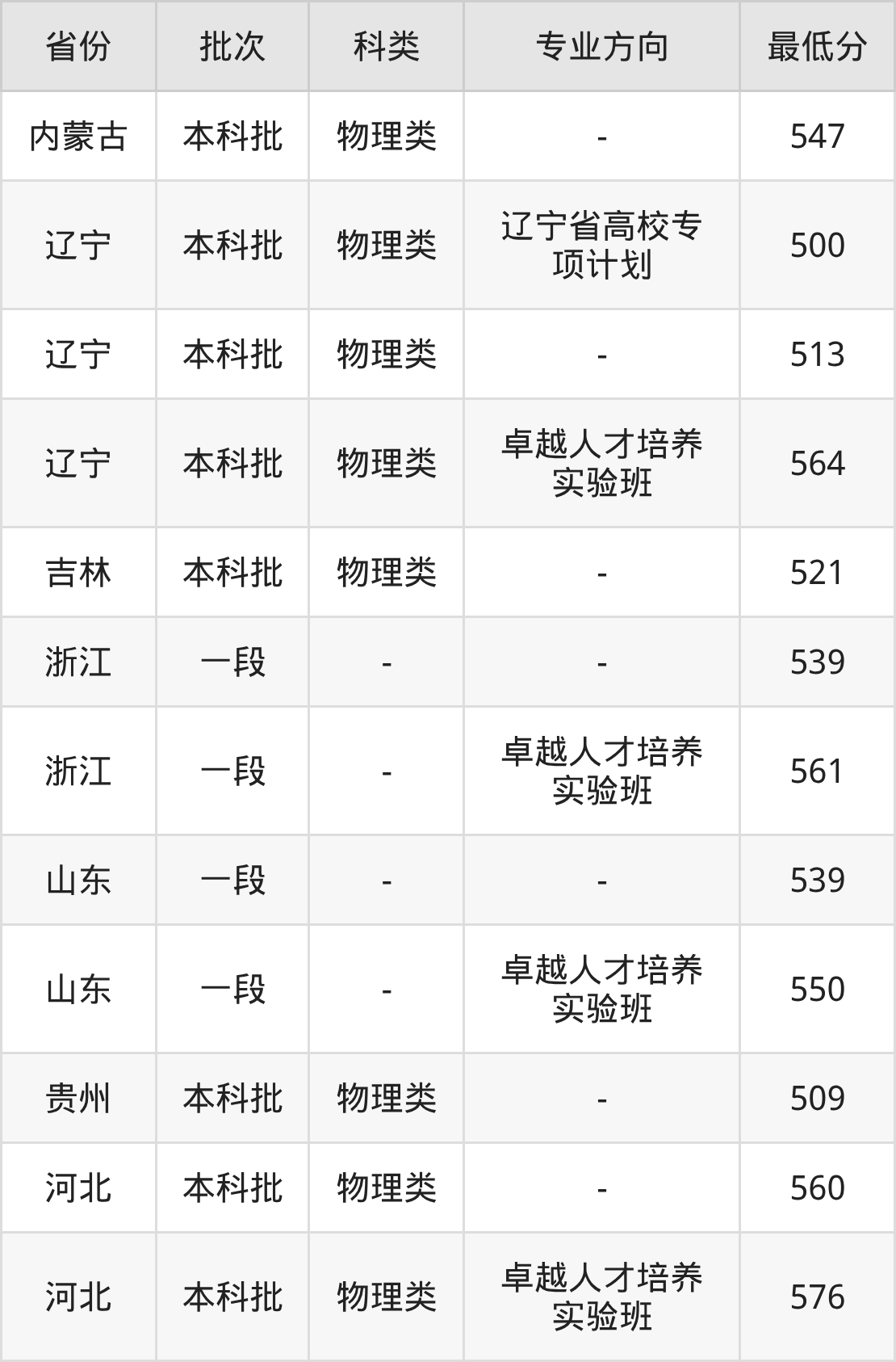 539分(位次126334名),561分(卓越人才培养实验班、位次99067名);