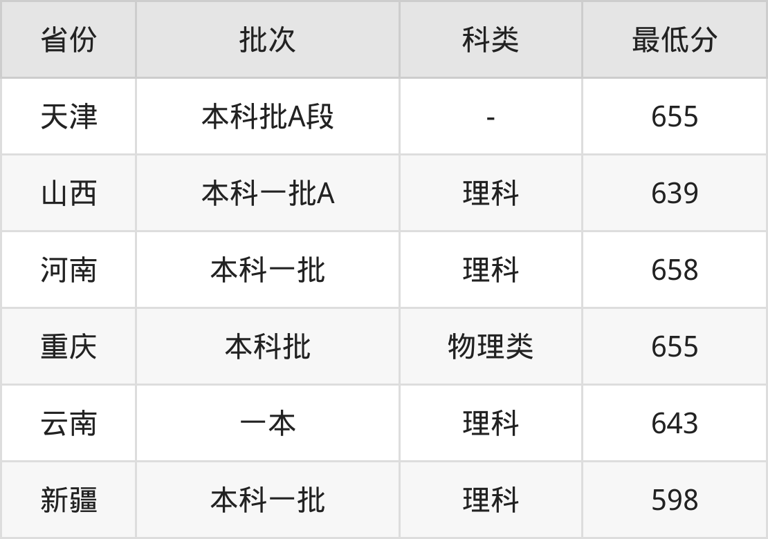 | 批次 | 最低分 | 位次 |