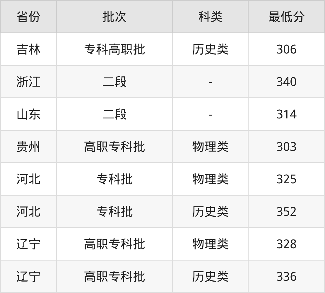 | 批次 | 最低分 | 位次 |