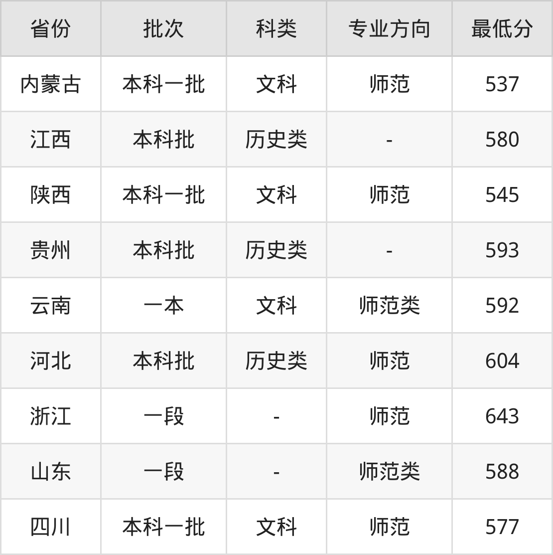2024年浙江师范大学历史学专业在省外招生分数线各不相同,具体如下: