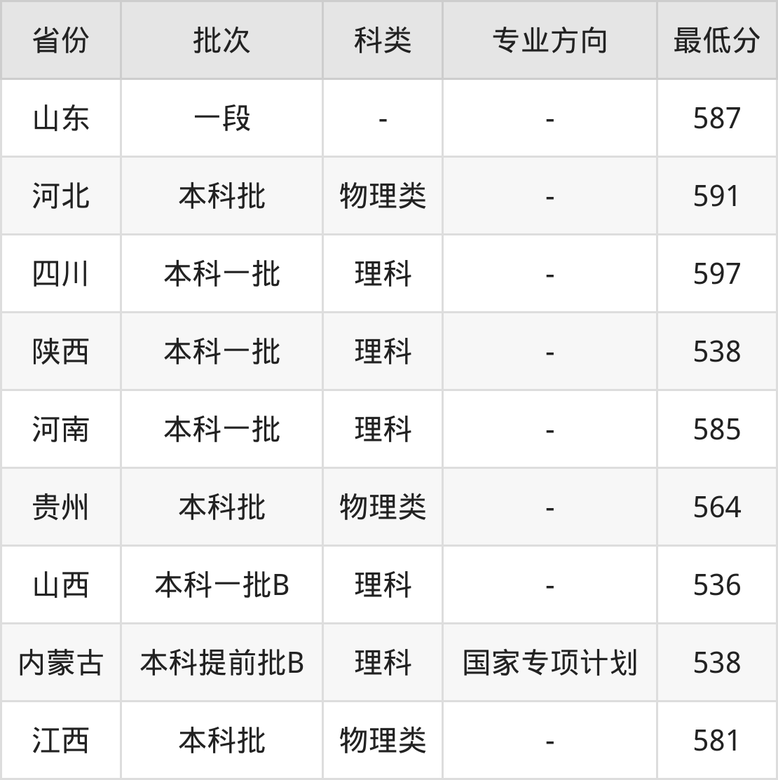 理科538分(国家专项计划、位次13198名);