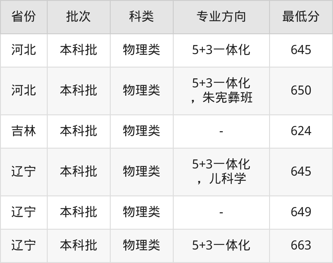 物理类645分(5+3一体化,儿科学、位次4386名),物理类649分(位次3711名),物理类663分(5+3一体化、位次1986名);