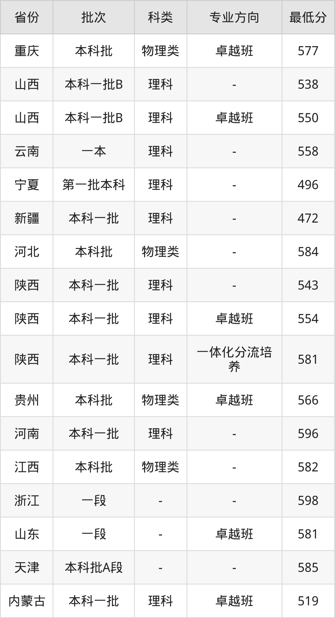 | 本科一批 | 理科 | 卓越班 | 554 | 21322 |