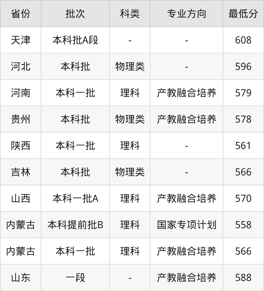 | 批次 | 科类 | 专业方向 | 最低分 | 位次 |