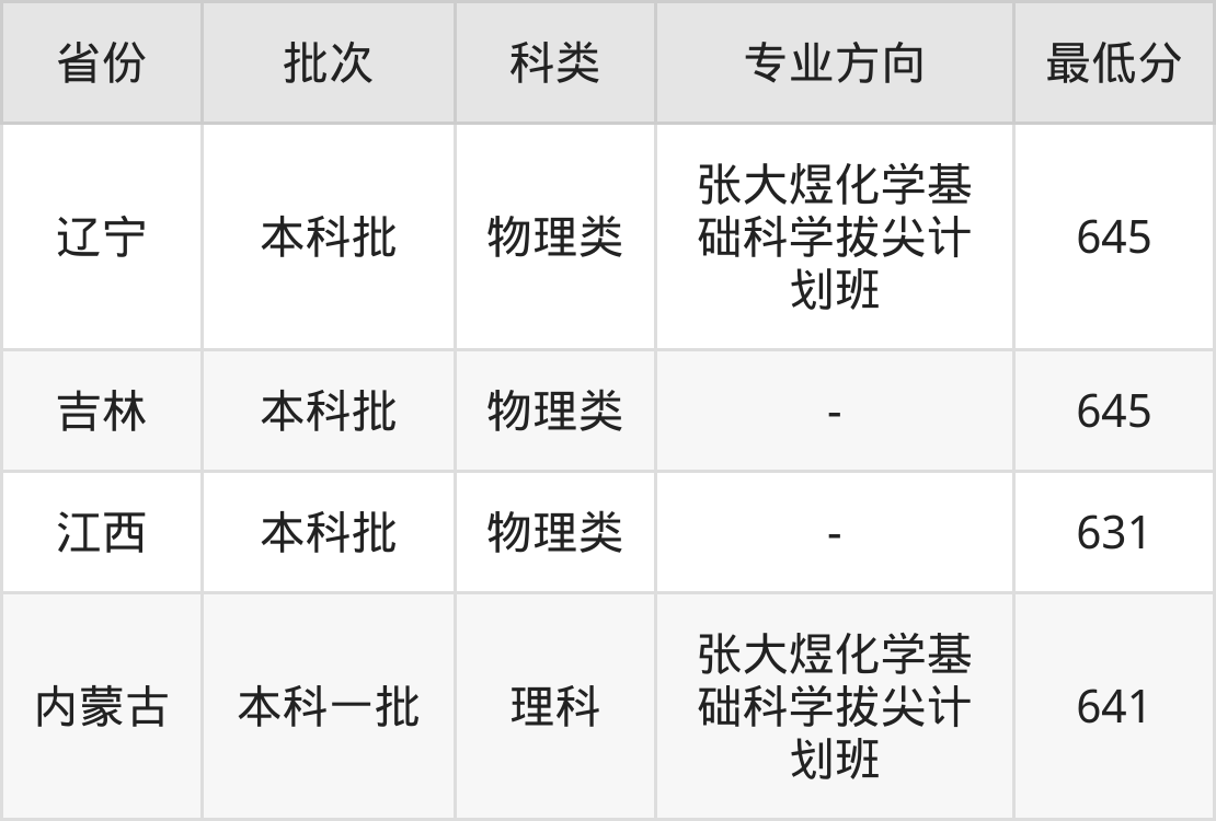| 本科批 | 物理类 | 张大煜化学基 础科学拔尖计 划班 | 645 | 4386 |