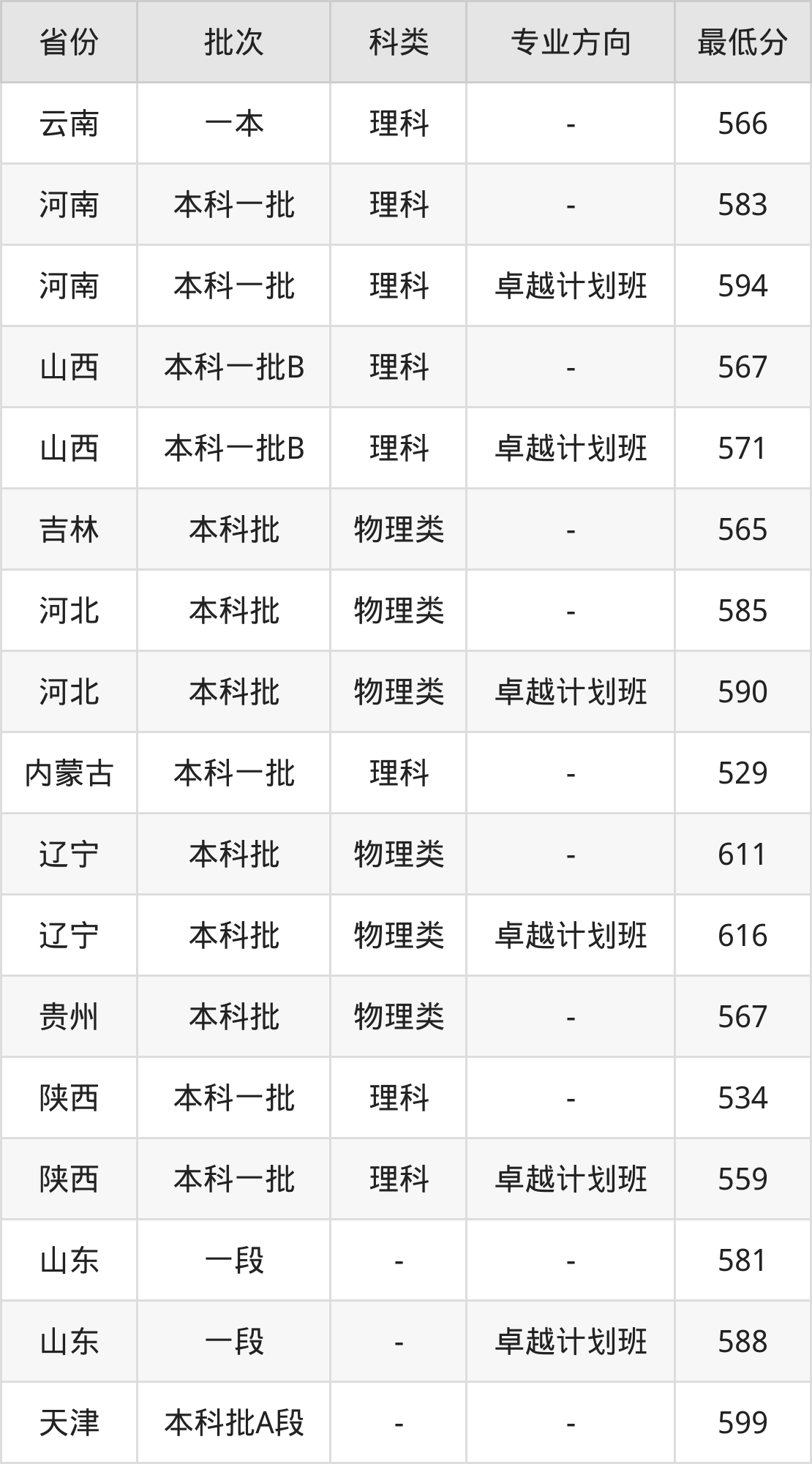 | 本科批 | 物理类 | 卓越计划班 | 590 | 21772 |