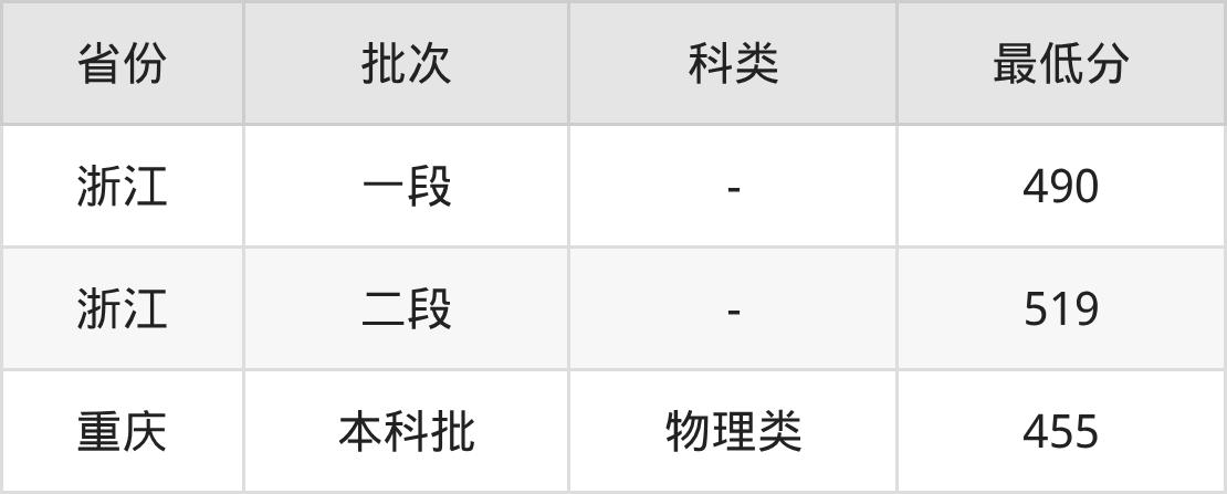 2025年重庆财经学院区块链工程专业在重庆市内本科招物理类考生,最低分为455分(物),超本科线30分,考生最低录取位次为88620名。下面是专业分数详情: