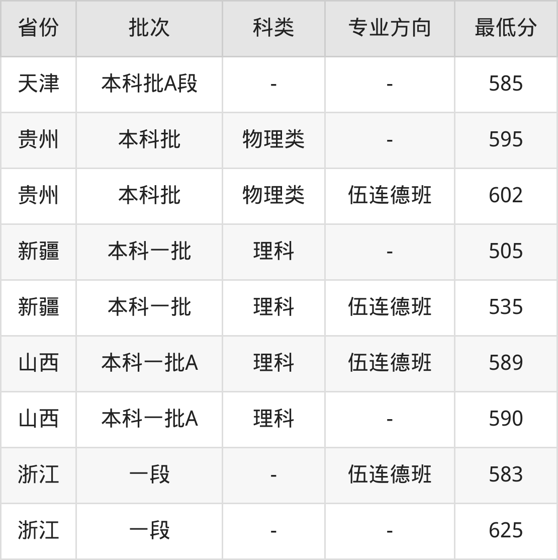 物理类583分(位次26440名),物理类593分(伍连德班、位次19893名);