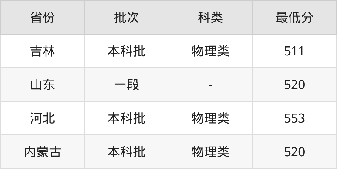| 批次 | 科类 | 最低分 | 位次 |