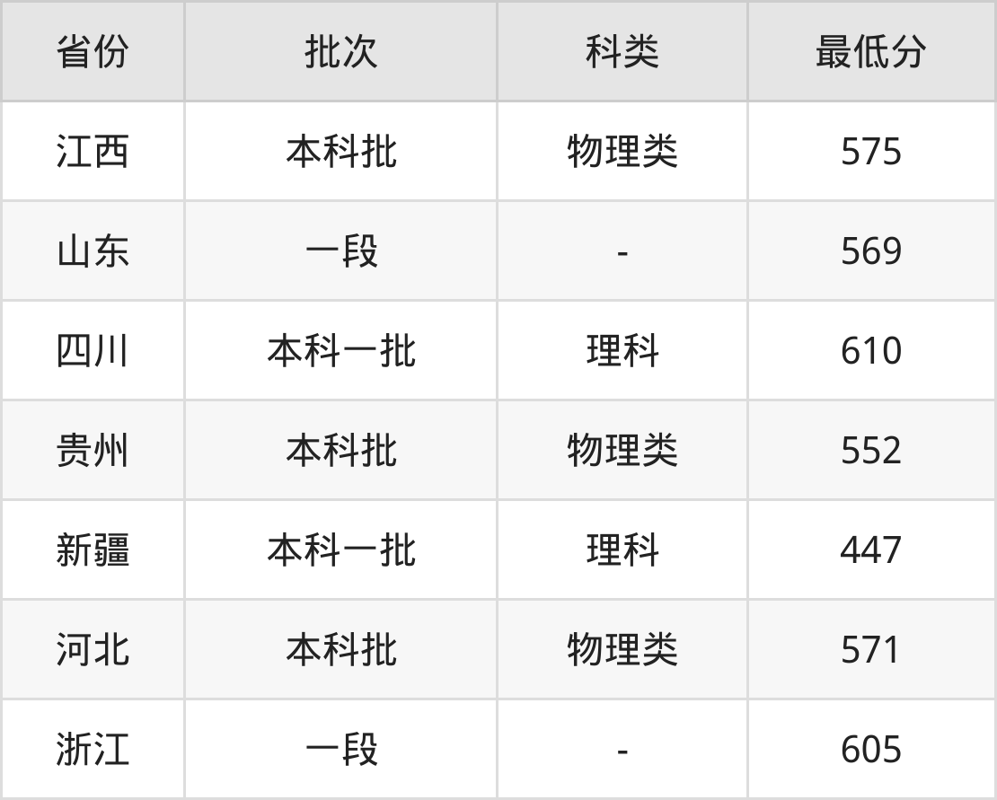 | 批次 | 科类 | 最低分 | 位次 |