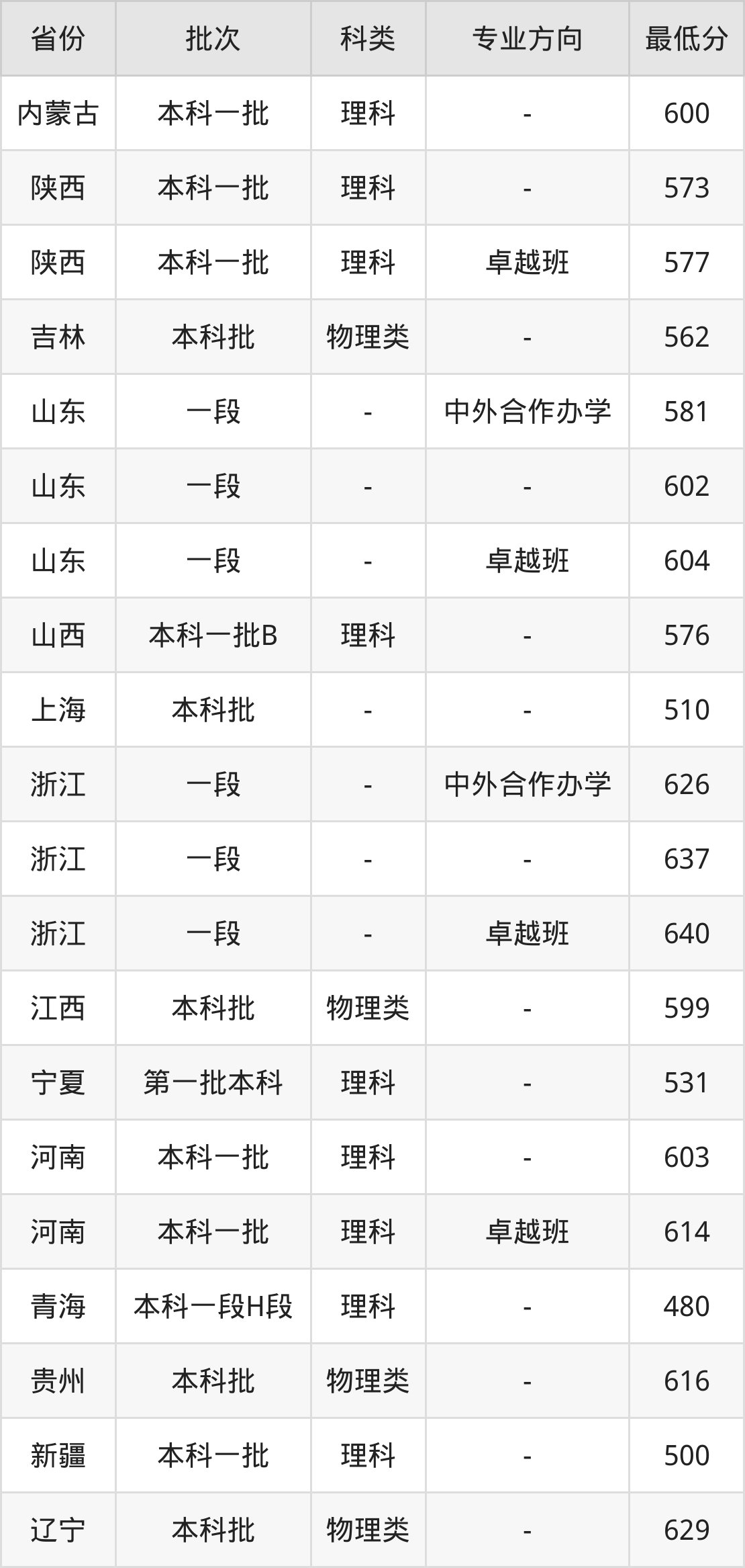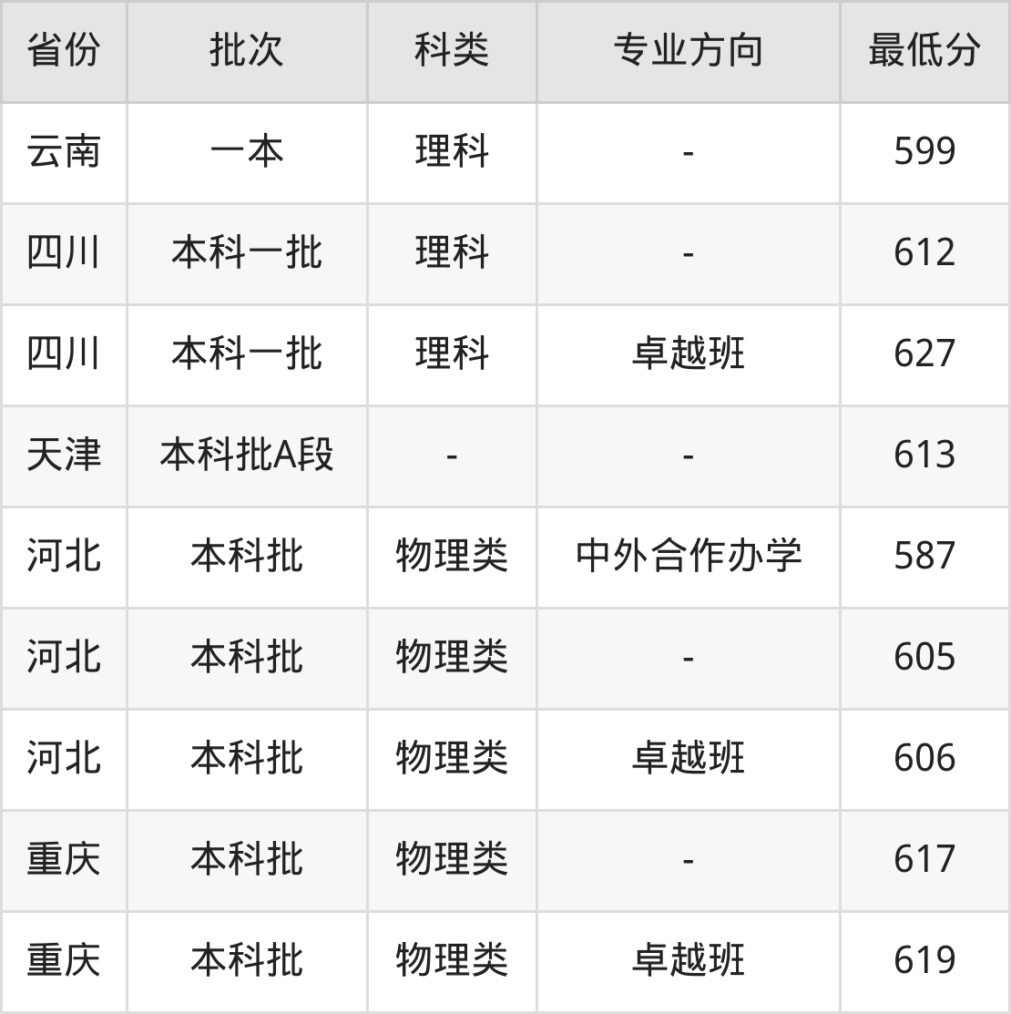 物理类587分(中外合作办学、位次23707名),物理类605分(位次13385名),物理类606分(卓越班、位次12898名);