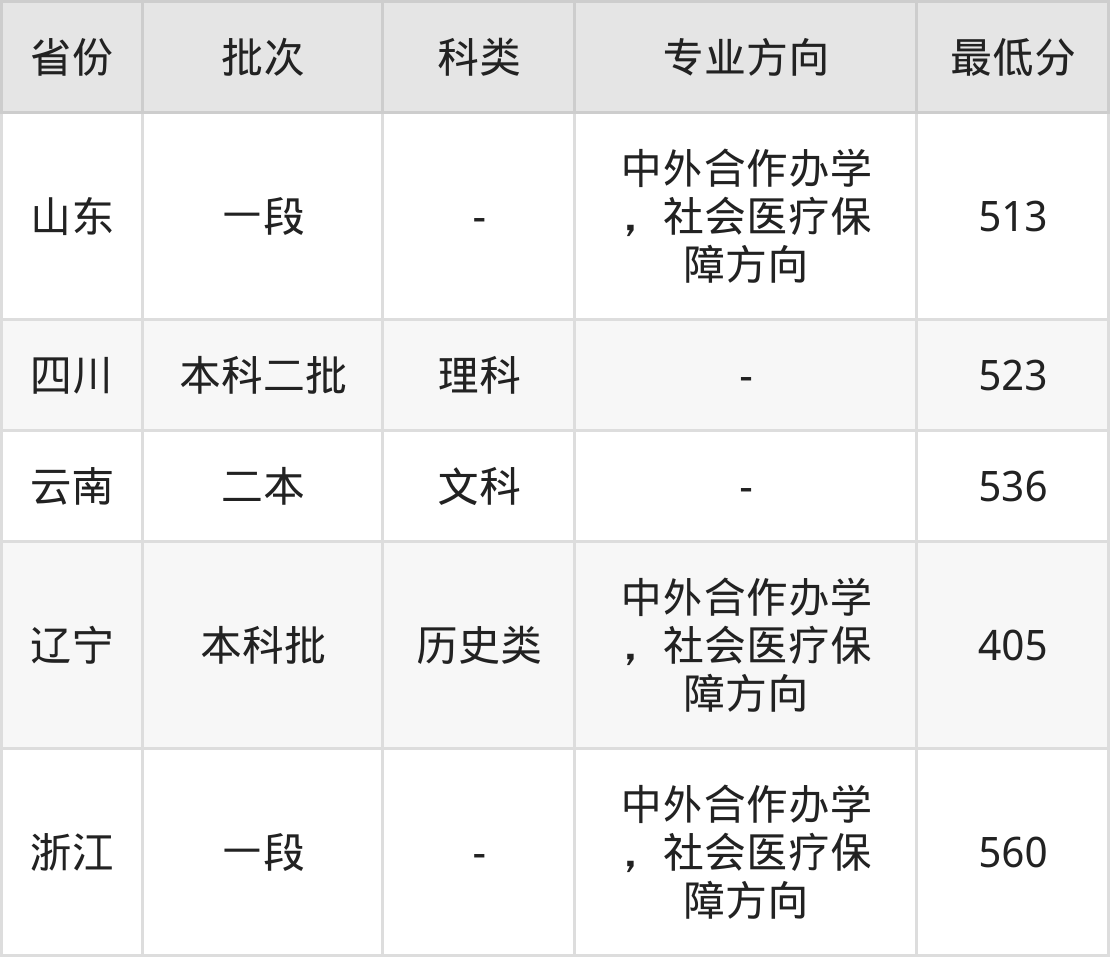 历史类405分(中外合作办学,社会医疗保障方向、位次24697名);