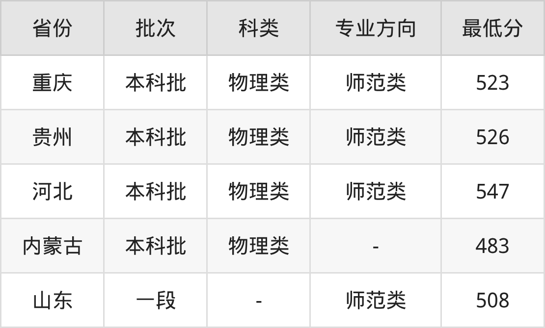 海南师范大学物理学专业录取分数线2025各省汇总显示,省外招生最低分为河北547分、内蒙古483分、山东508分、重庆523分等。更多专业分数详情、选科要求、专业简介等均可在正文查阅。