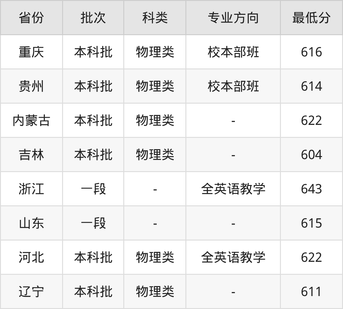 物理类622分(全英语教学、位次13077名);