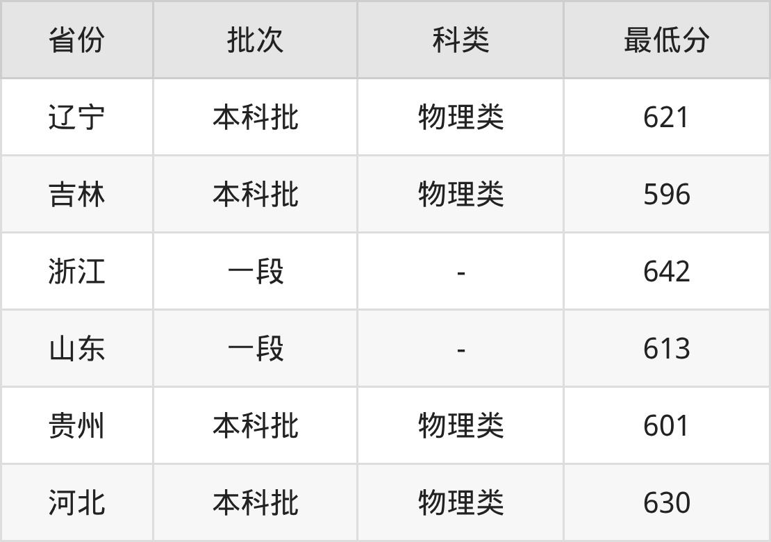 | 批次 | 最低分 | 位次 |