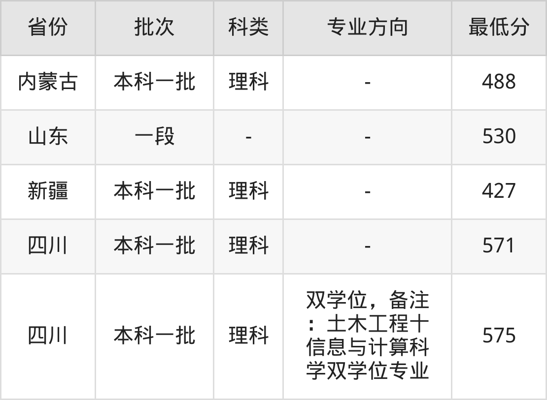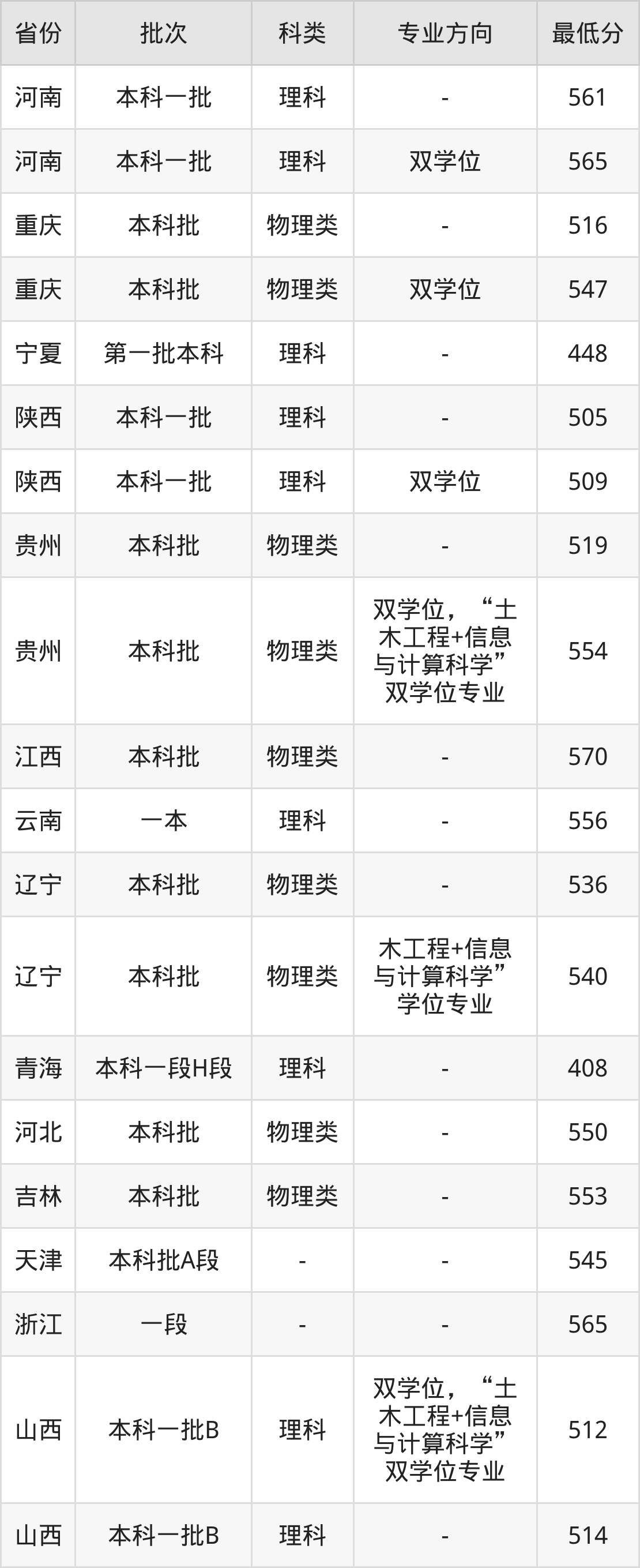 2024年重庆交通大学土木工程专业在市外招生分数线各不相同,具体如下: