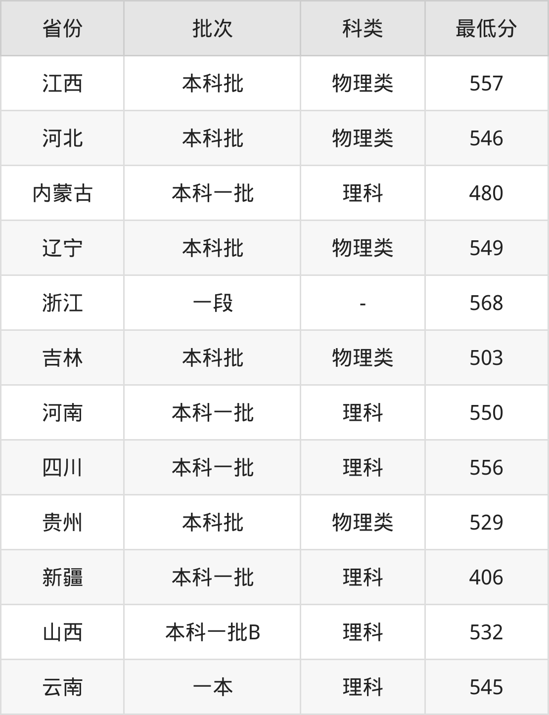 | 物理+化学 | 辽宁、黑龙江、江苏、 江西、湖北、湖南、广 西、河北、吉林、浙江 、安徽、贵州、甘肃 |