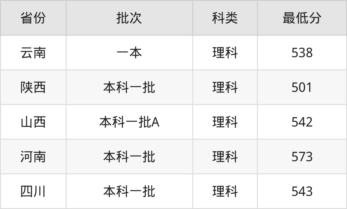 | 批次 | 科类 | 最低分 | 位次 |