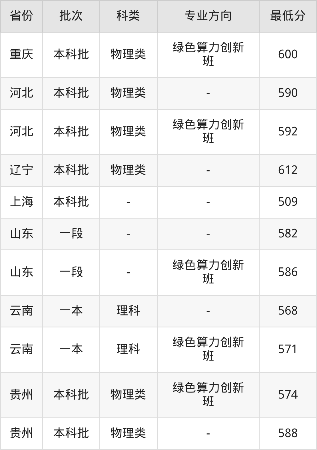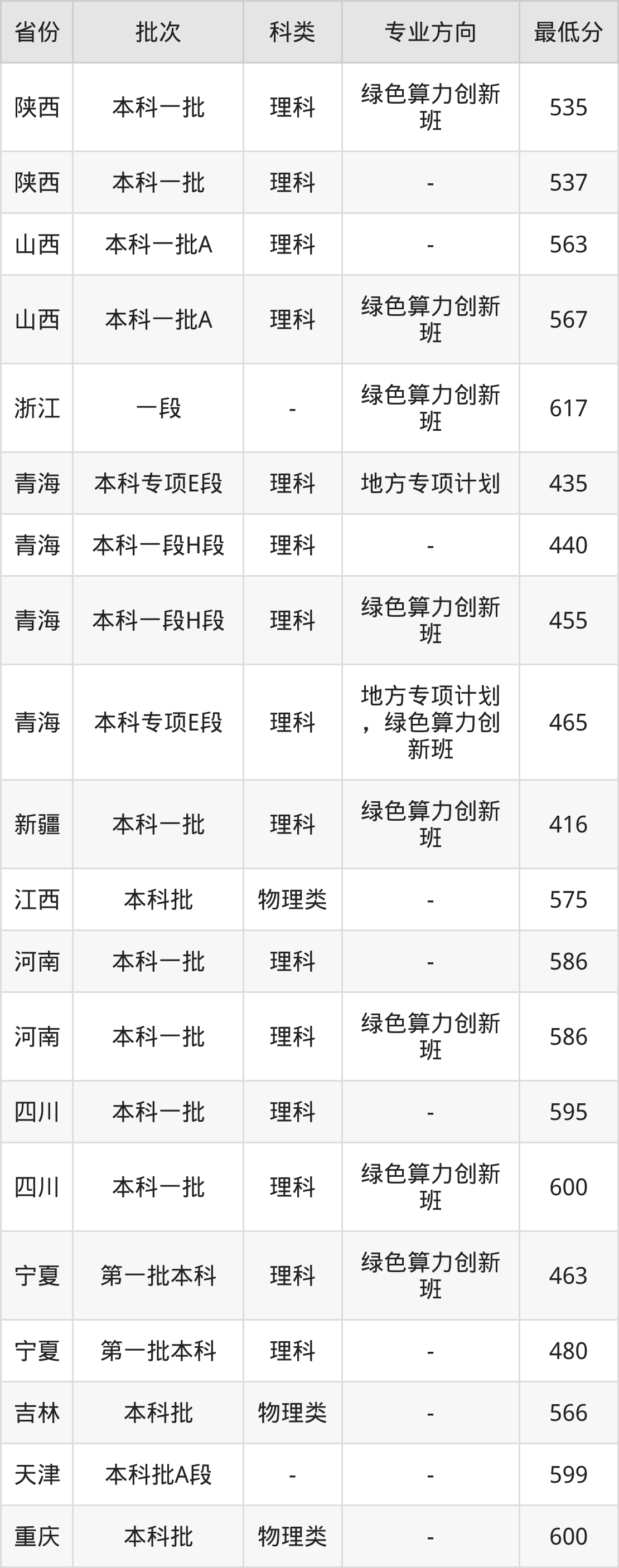 | 本科一段H段 | 理科 | 绿色算力创新 班 | 455 | 4262 |