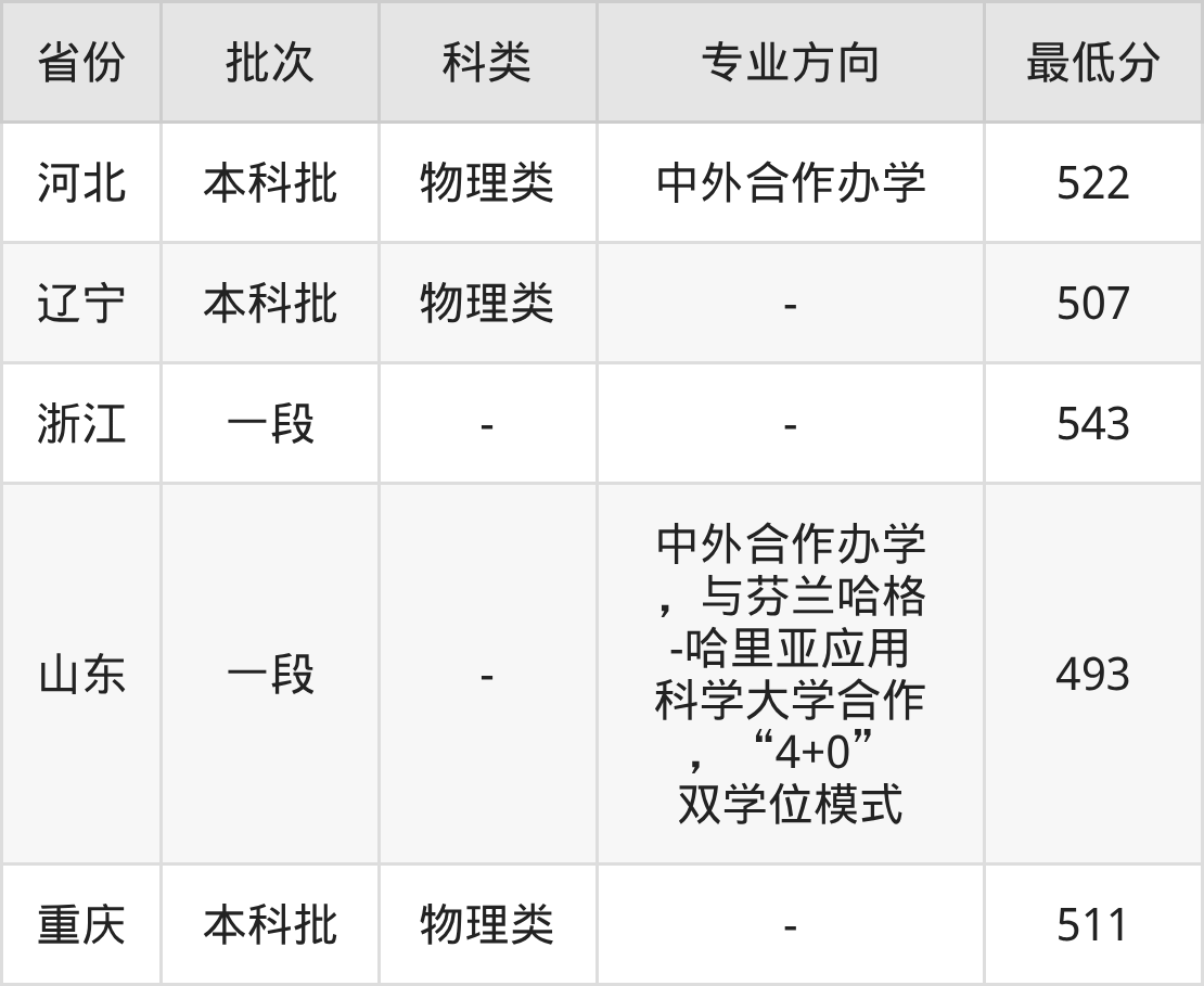 493分(中外合作办学,与芬兰哈格-哈里亚应用科学大学合作,“4+0”双学位模式、位次203944名);