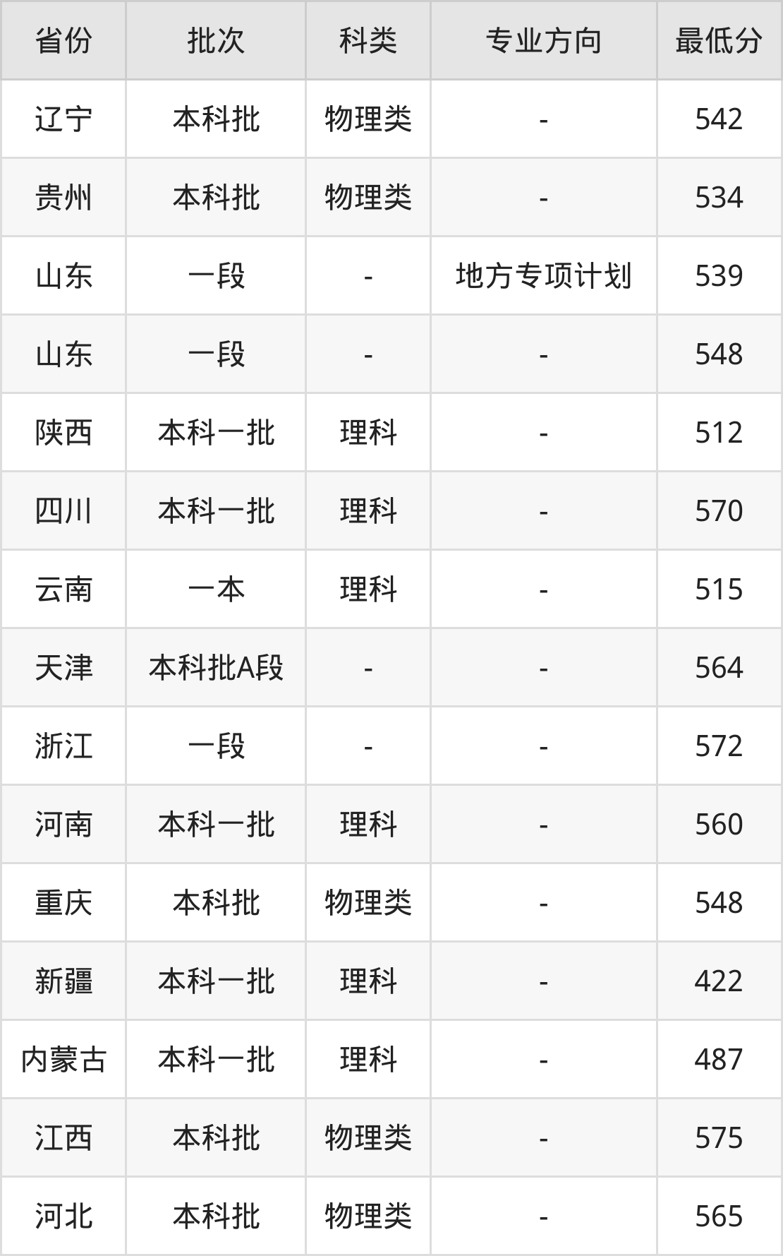 | 批次 | 专业方向 | 最低分 | 位次 |