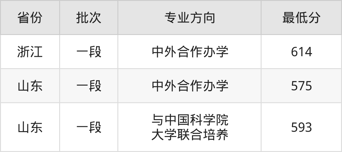 575分(中外合作办学、位次43009名),593分(与中国科学院大学联合培养、位次27185名)。