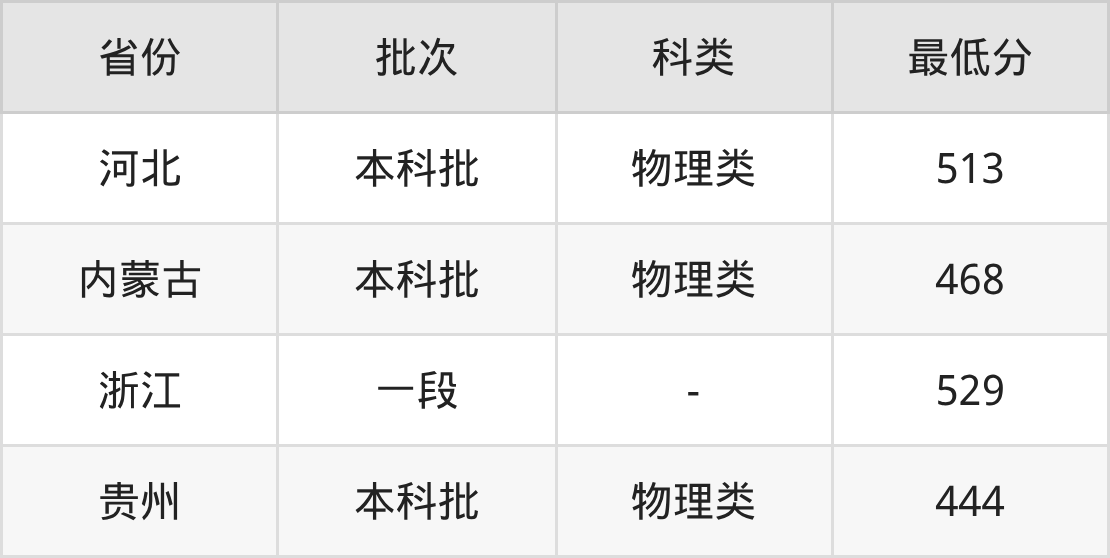| 批次 | 最低分 | 位次 |