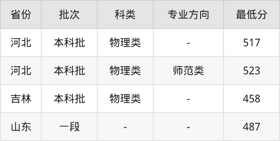 | 本科批 | 物理类 | 师范类 | 523 | 122069 |